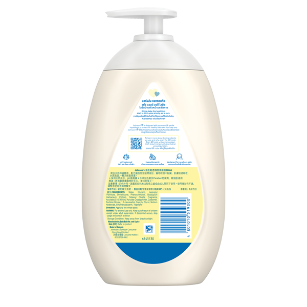 強生嬰兒潤膚乳的獨特配方,可於肌膚表面形成保護層,讓肌膚免受乾燥及外在刺激的困擾