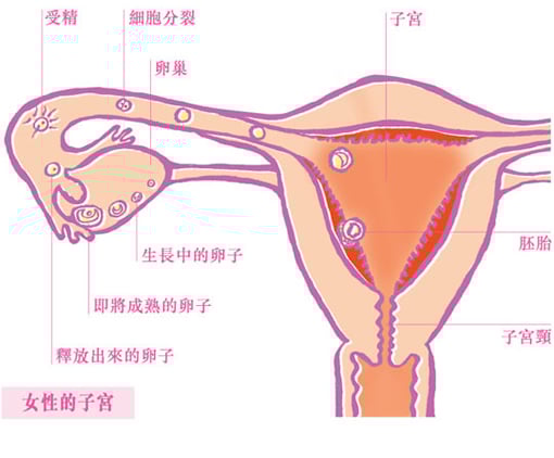 在月經週期第 14天前後,一個成熟的卵子從一個卵巢釋放出來,此時,如果有精子能成功游動至與卵子融合,即稱為受精.受精後約第4天,受精卵到達子宮腔,約3週後再開始植入子宮內腔著床,便完成受孕過程,隨即正式進入懷孕期。