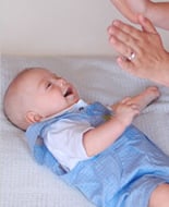 準備好滾動吧! 從現在到寶寶六個月大之間,他將學習如何反身及翻滾。喜歡伸懶腰並讓背拱起來的活潑寶寶可能比喜歡躺著與享受週遭視覺樂趣的鬆軟寶寶更早學會反身及翻滾呢。